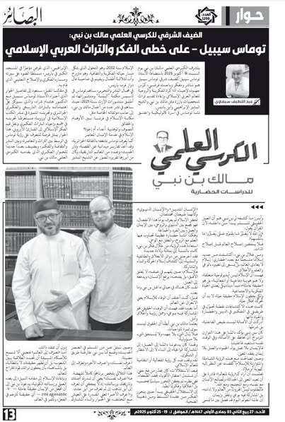 جريدة البصائر، العدد الجديد، الكرسي العلمي مالك بن نبي للدراسات الحضارية : الحوار الذي أجراه الدكتور هشام شراد مع الناشر الفرنسي المسلم بلال توماس سبيل Thomas Sibille .